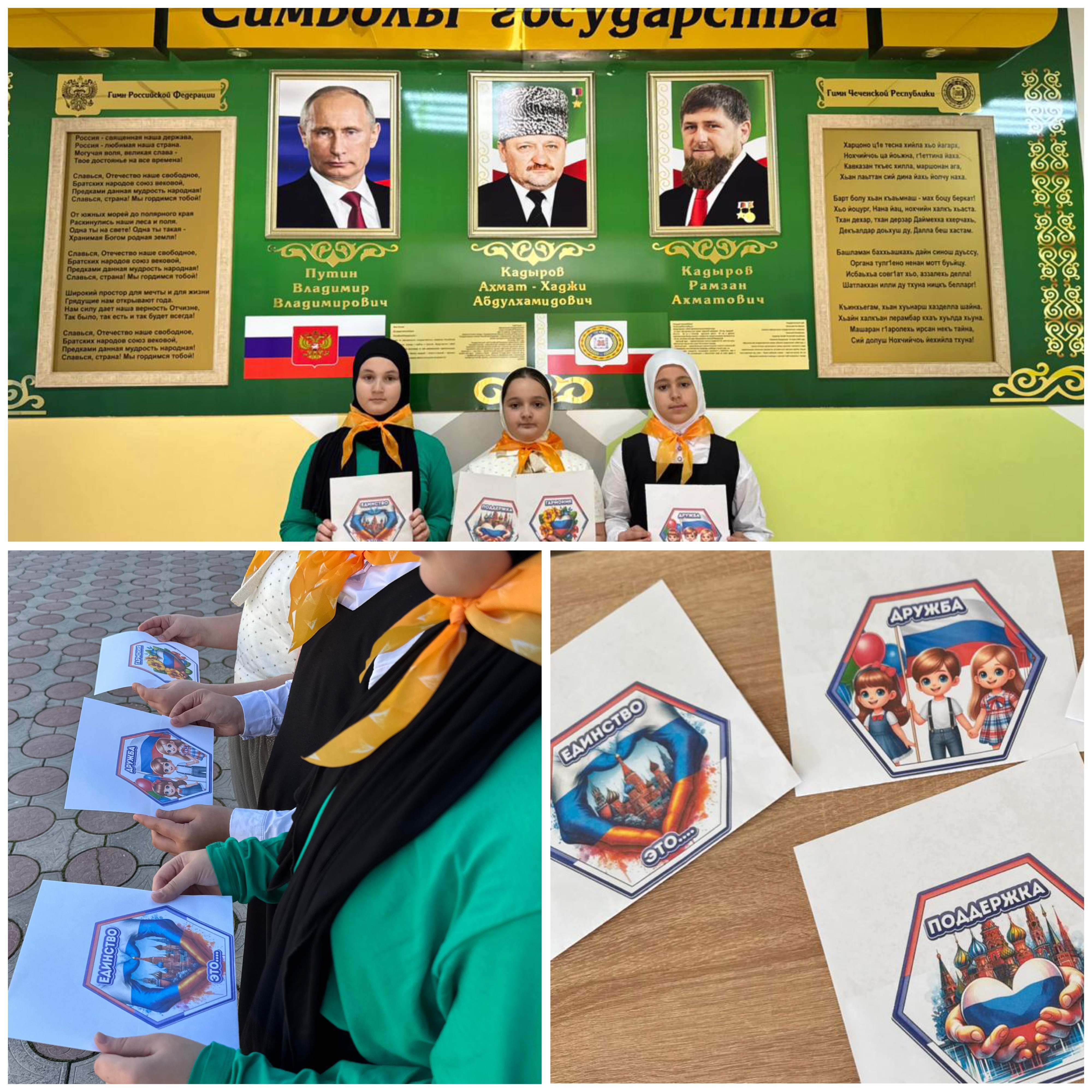 творческая выставка рисунков и плакатов «Мы — единая страна», подготовленная учениками начальной и средней школы;