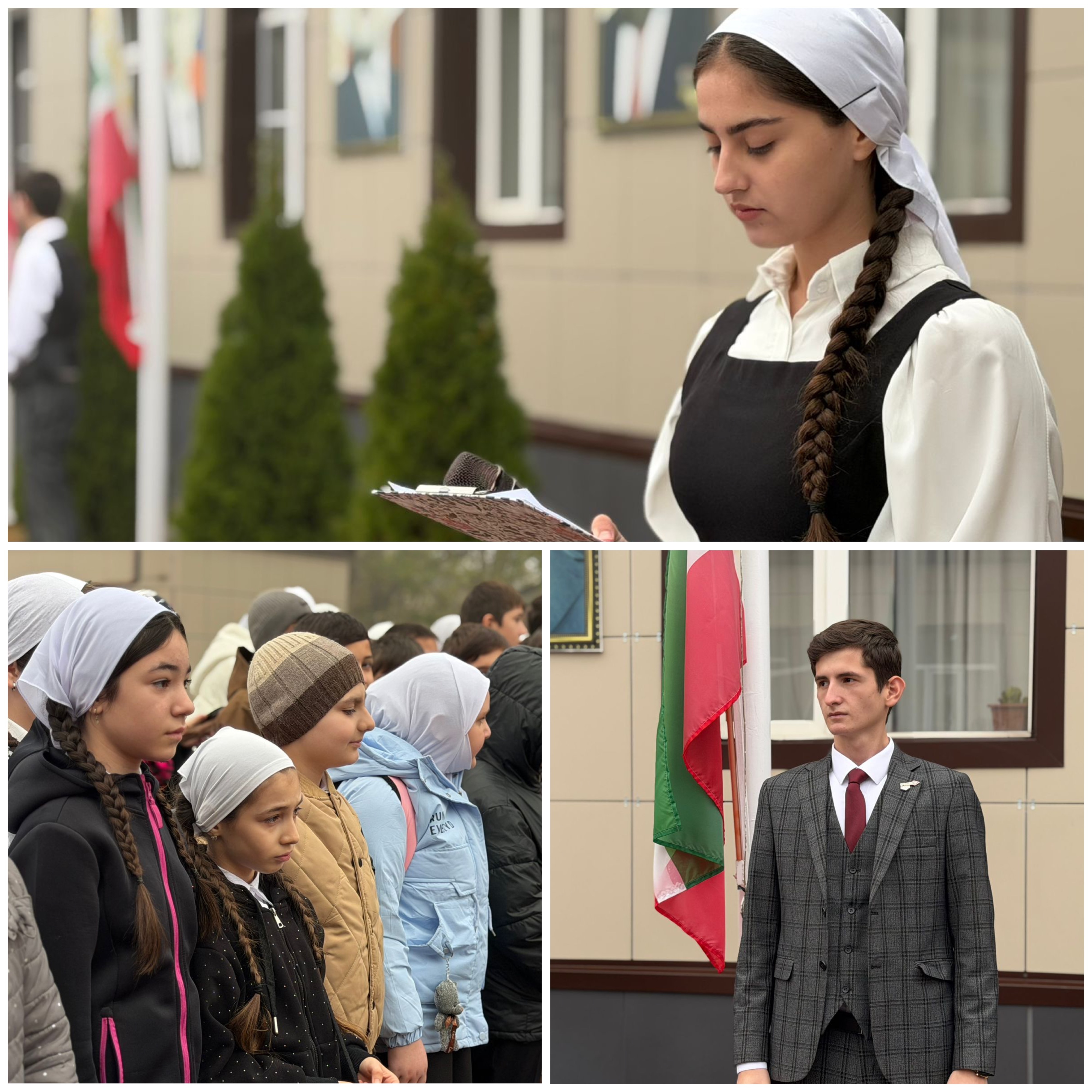Мероприятие началось с поднятия Государственных флагов и исполнения гимнов Российской Федерации и Чеченской Республики, после чего продолжилось приветственными словами представителей администрации школы.