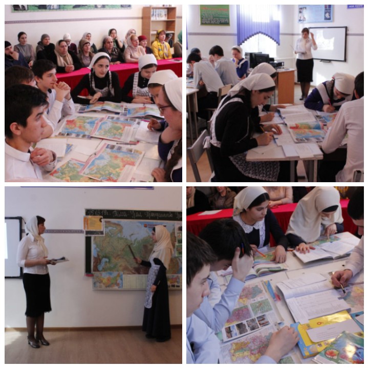 Учитель географии Мицуева Р.Р., дала открытый урок в 9 классе.